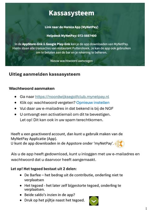 In de AppStore-link & Google Play-link kan je de app downloaden van MyNetPay. Hierin staan alle transacties van restaurant Puttershoek. Je kan de app ook gebruiken om te betalen aan de bar en je rekening te beheren.